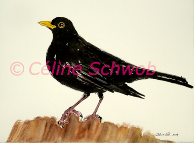 Blackbird, original watercolor on paper, 11" x 15", 2024