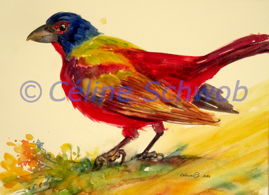Painted Bunting, original watercolor on paper, 11" x 15", 2024