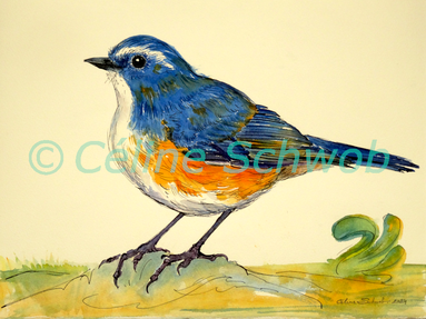 Red-flanked bluetail, original watercolor on paper, 11" x 15", 2024