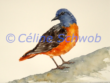 Common rock thrush, watercolor on paper, 11" x 15", 2019